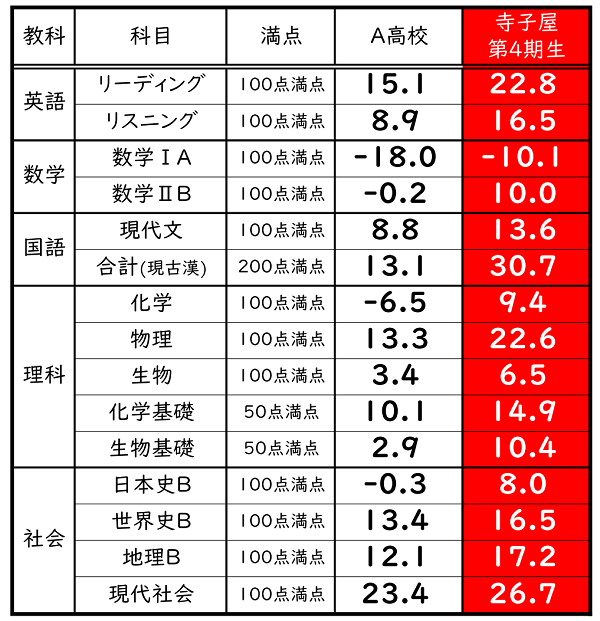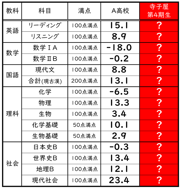 母体を統一するために大垣でお馴染みのA高校で比較します。