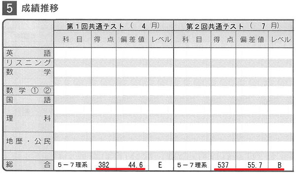 総合の偏差値が5以上UPした生徒は9名中4名います!