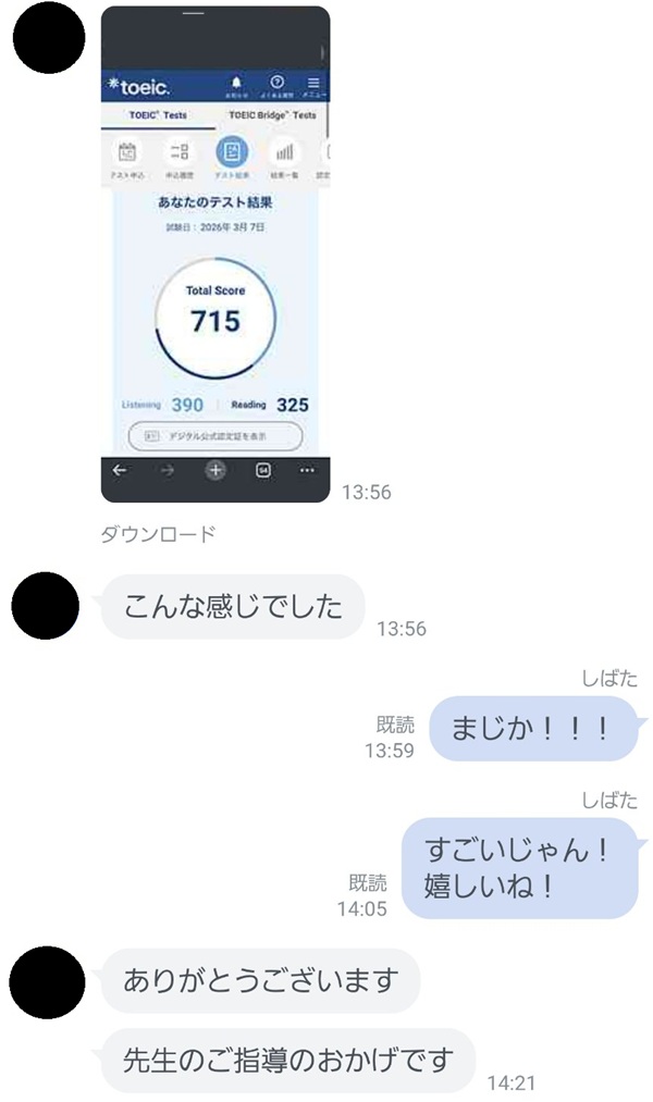 LINEで結果報告を受けたあと、最後に添えられていた一言。