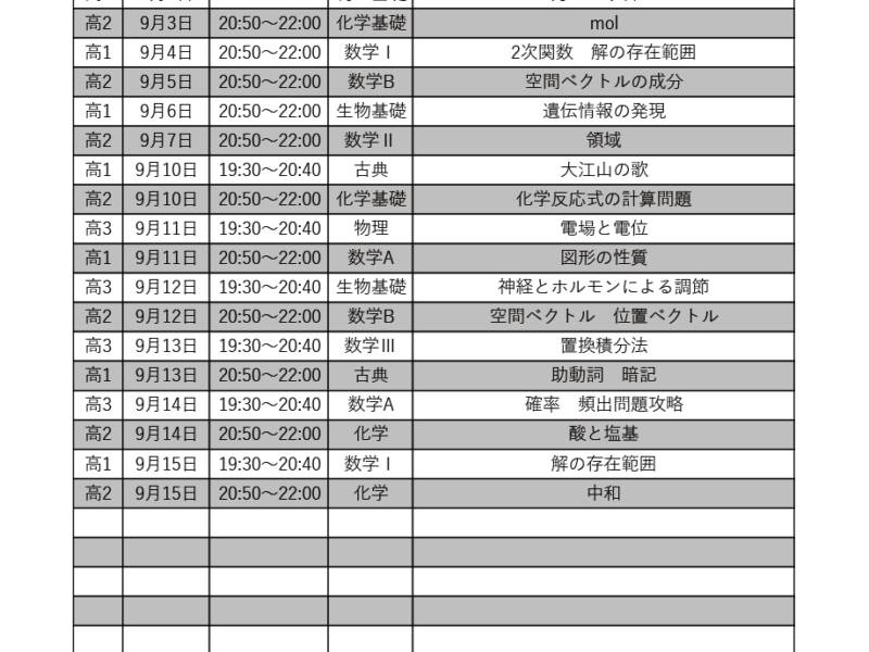 対策授業の予定表を更新しました。 国語・数学・理科・英語を高校別に合わせて、 映像授業ではなく、生徒の表情を感じ取りながら、生の授業をしていきます。 通常授業では、私が授業内容を決めていますが、 定期 …