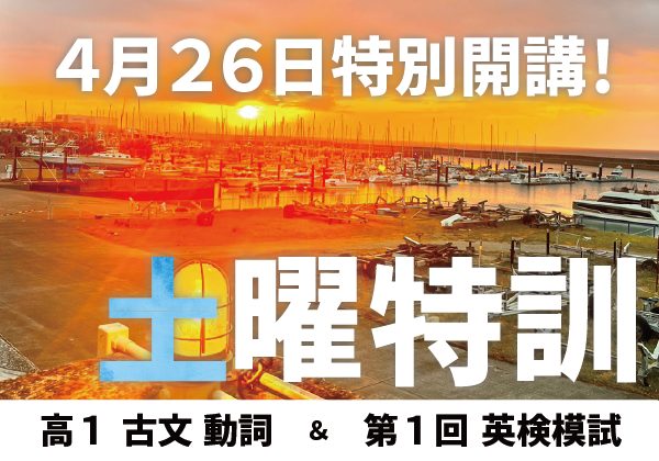 もともとお休みの予定だった4月26日(土)ですが… どうしてもやりたい授業があるので、特別に2つ開講します! ①『高1対象 古文~動詞攻略~』 presented by Ito 高校生に …